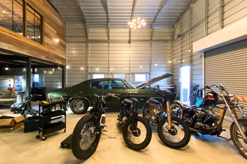 「車やバイクを置くためのスペース」としてだけでなく、「本気の趣味」「仕事」「仲間との時間」を楽しめる空間。実際に、こちらのお施主様はバイクのカスタムやアイアン家具のDIYなど楽しまれているようです。