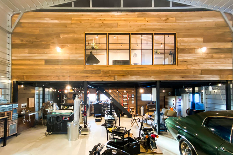 知る人ぞ知る“世田谷ベース”のような大型アメリカンガレージなのですが、2階からファクトリーを見下ろすような景色が圧巻ですよね。