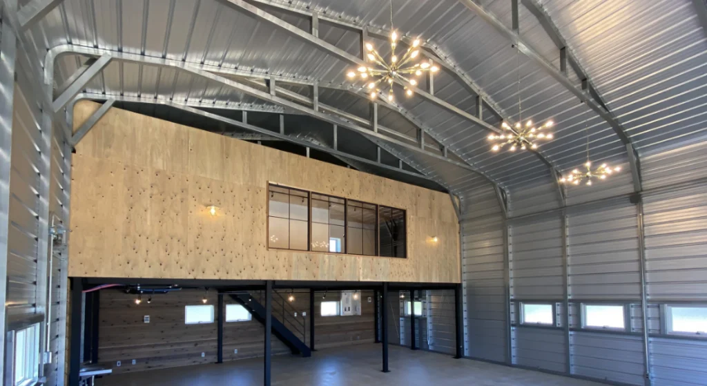 天井高をしっかり確保すると、開放感や間口やインダストリアルテイストも維持しながら、無骨だけではないプロポーションに。